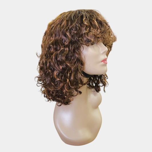 12” 4/27 Colour Water Wave Full Fringe Wig – 100% Human Hair