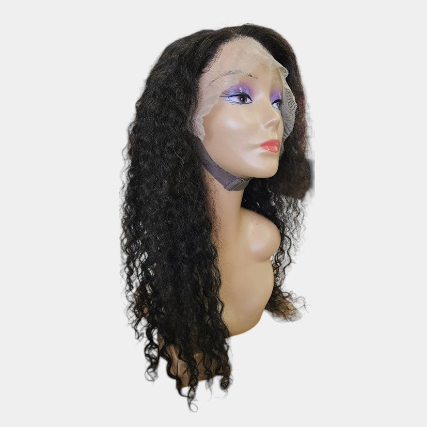 20โ Water Wave Natural Black Full Frontal Lace Wig โ 100% Human Hair | 13x4 Frontal