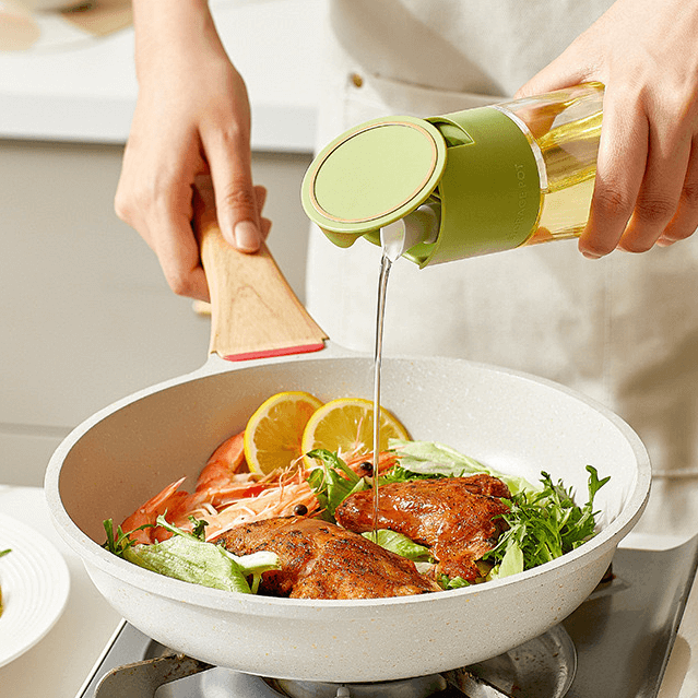 The Auto Flip-open Anti-drip Oil Bottle in stylish white where form meets function in your kitchen. This dispenser's innovative design ensures a mess-free pour with its auto flip-open feature and anti-drip mechanism. Elevate your culinary experience with this sleek white essential for a kitchen that's both chic and hassle-free.