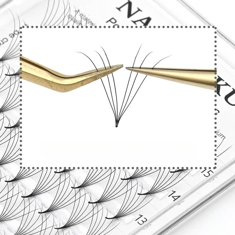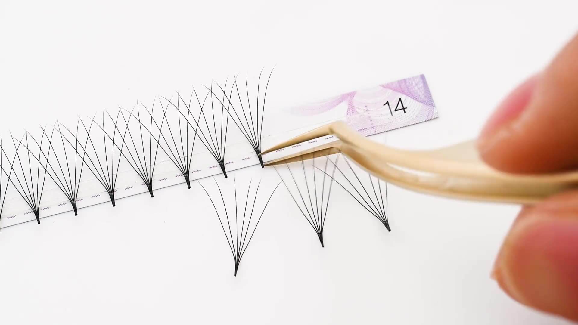 Each tray contains a generous collection of exquisitely handcrafted 6D, 8D and 10D volume fans, each lash fan comprised of six ultra-fine 0.07mm diameter lashes. Available in C and D curl, this combination strikes the perfect balance between volume and weightlessness, offering a captivating blend of fullness and comfort.
